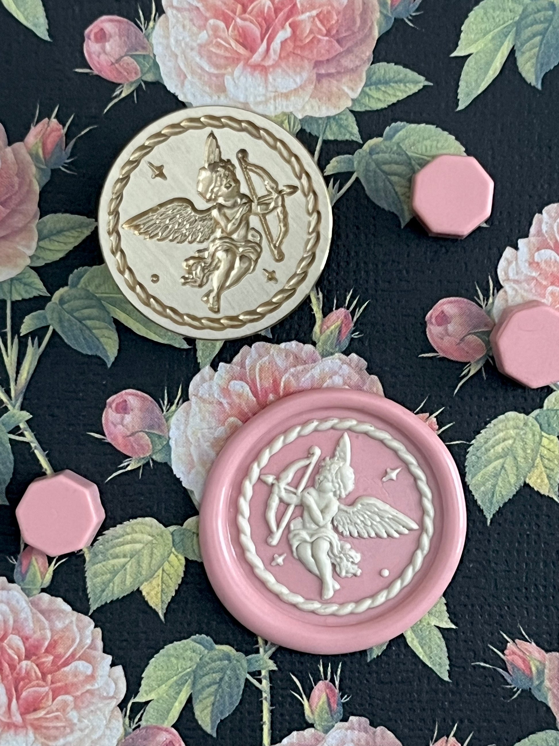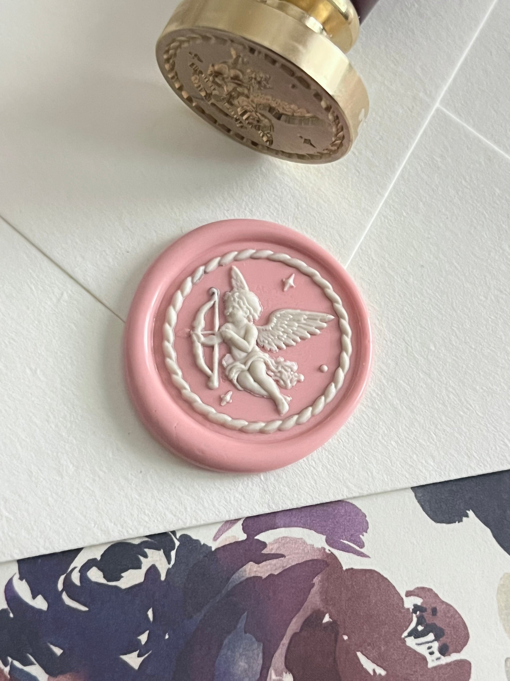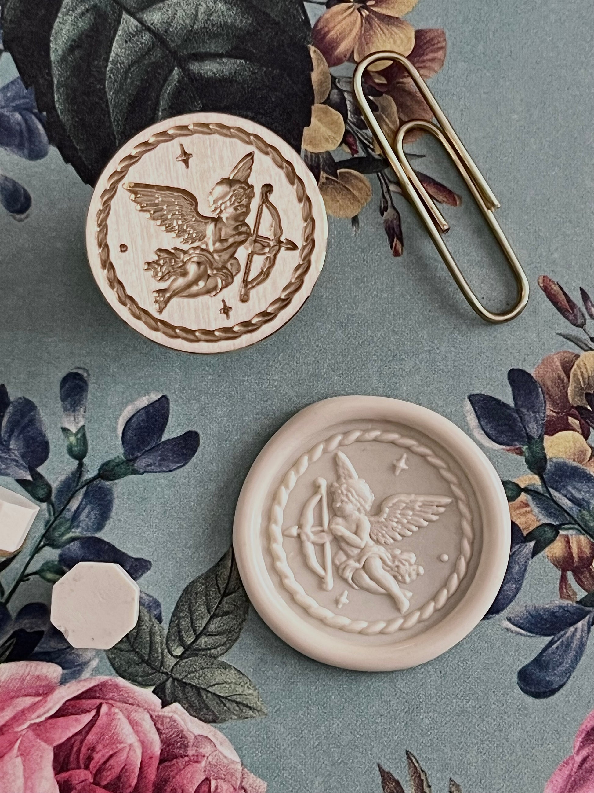 I’ve been wanting a cupid stamp in the shop for a long time 💘 My first attempt resulted in ordering from a supplier I hadn’t used before, and guess what?! It was made of fire lacquer, aka zinc alloy, which if you’ve ever used them, you know they’re a big thumbs down 😐. Fast forward to 2 years later, and one of my favorite suppliers offered this little 3D charmer, Cutie Cupid, and it was one thousand times a “YES” for me 🤩
