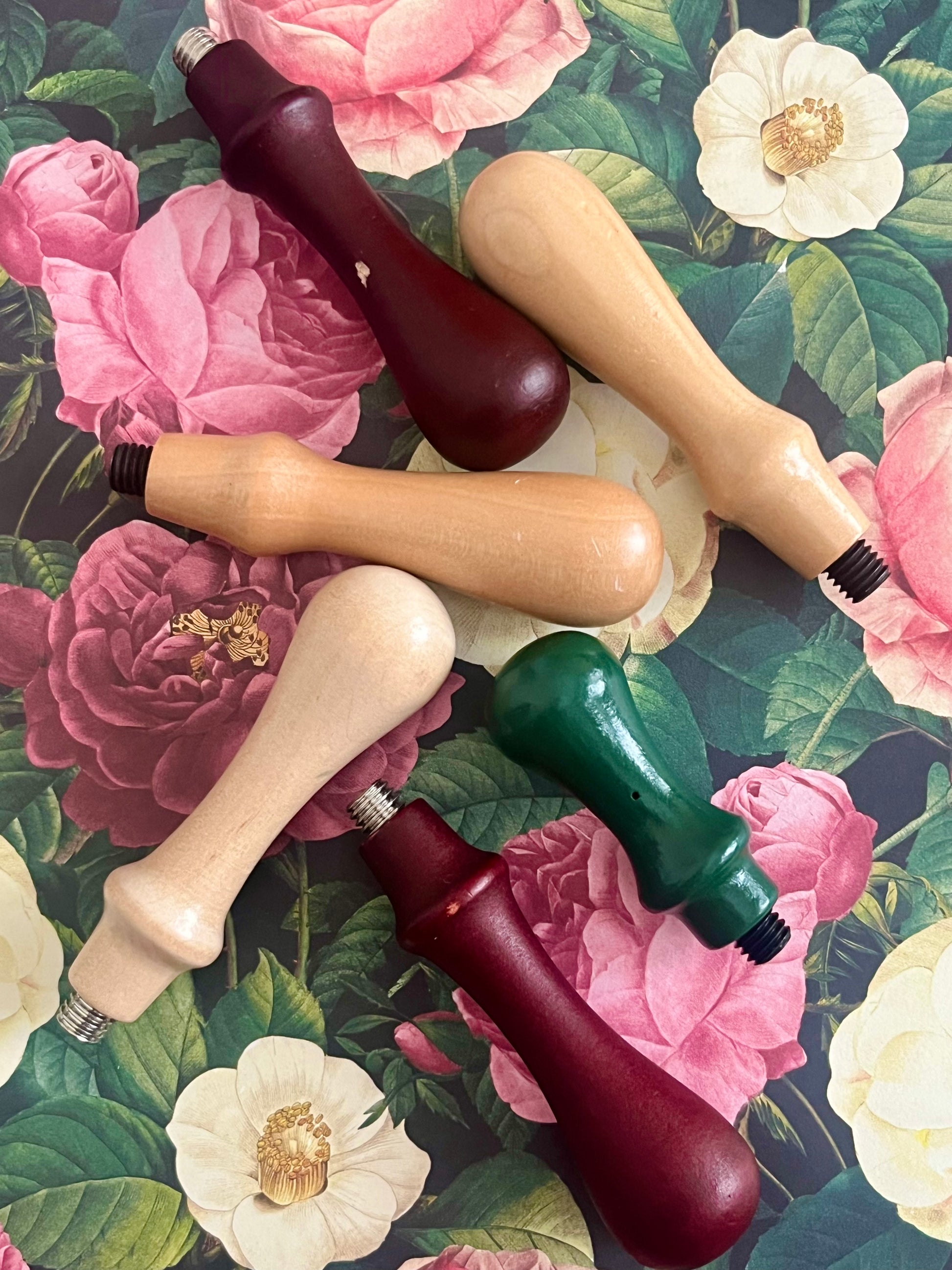 These handles didn’t pass Rita’s strict gaze, lol. They might have a little chipped paint here, or a scratch there, but they still function perfectly, and are interchangeable with all the stamp heads we carry in the shop. (You may even receive one without any issues, it‘s just been discontinued.) One thing you might want to be aware of: you won’t get to choose the color or style of your handle.