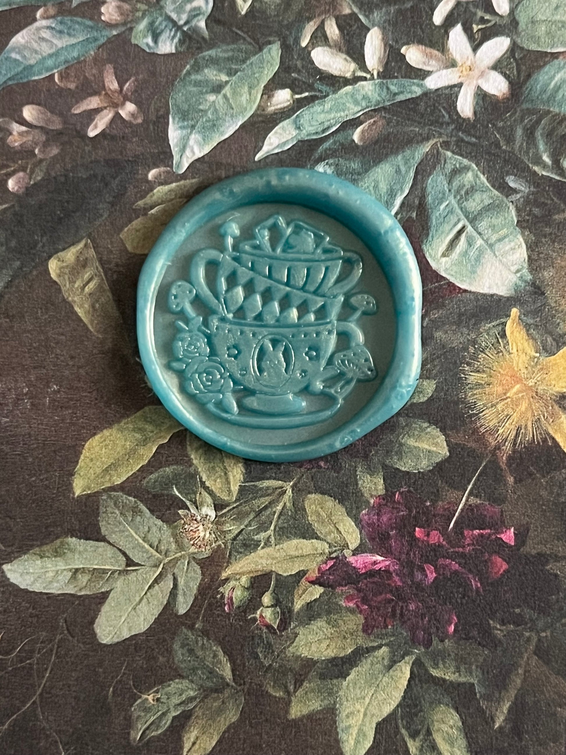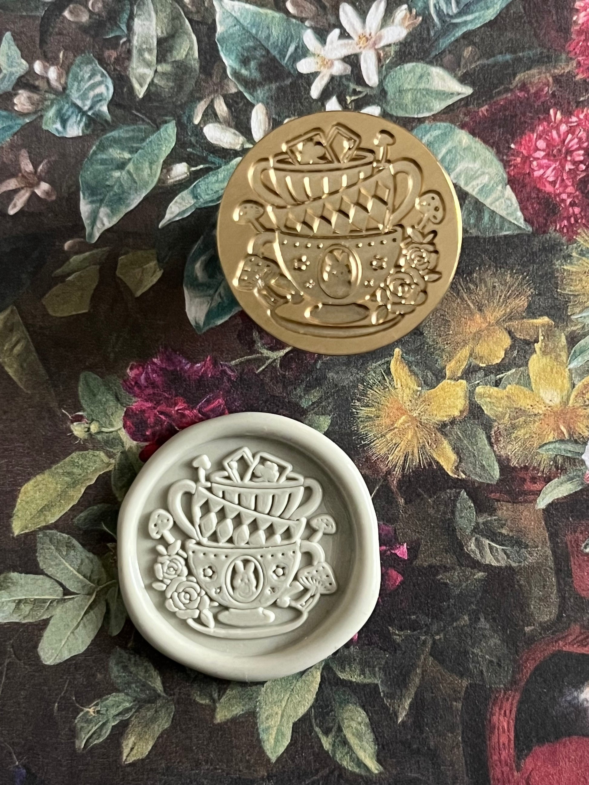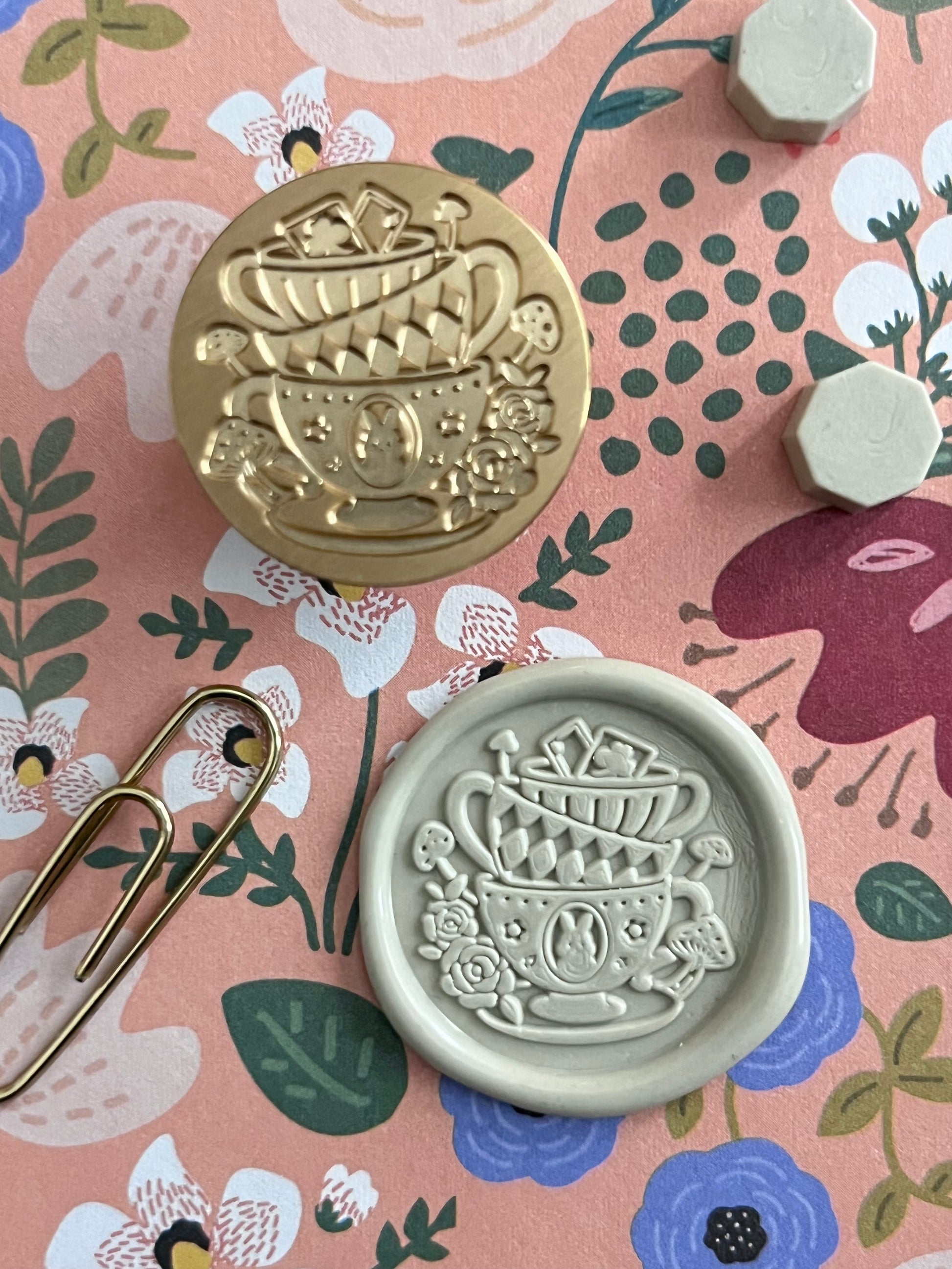 I’ve had several requests for Alice in Wonderland seals for the shop, and when I came across this stamp (with its adorable stacked tea cups 🤩) and its sister stamp, Curiouser and Curiouser, I’m like, “Yep, those are them 😍!!”