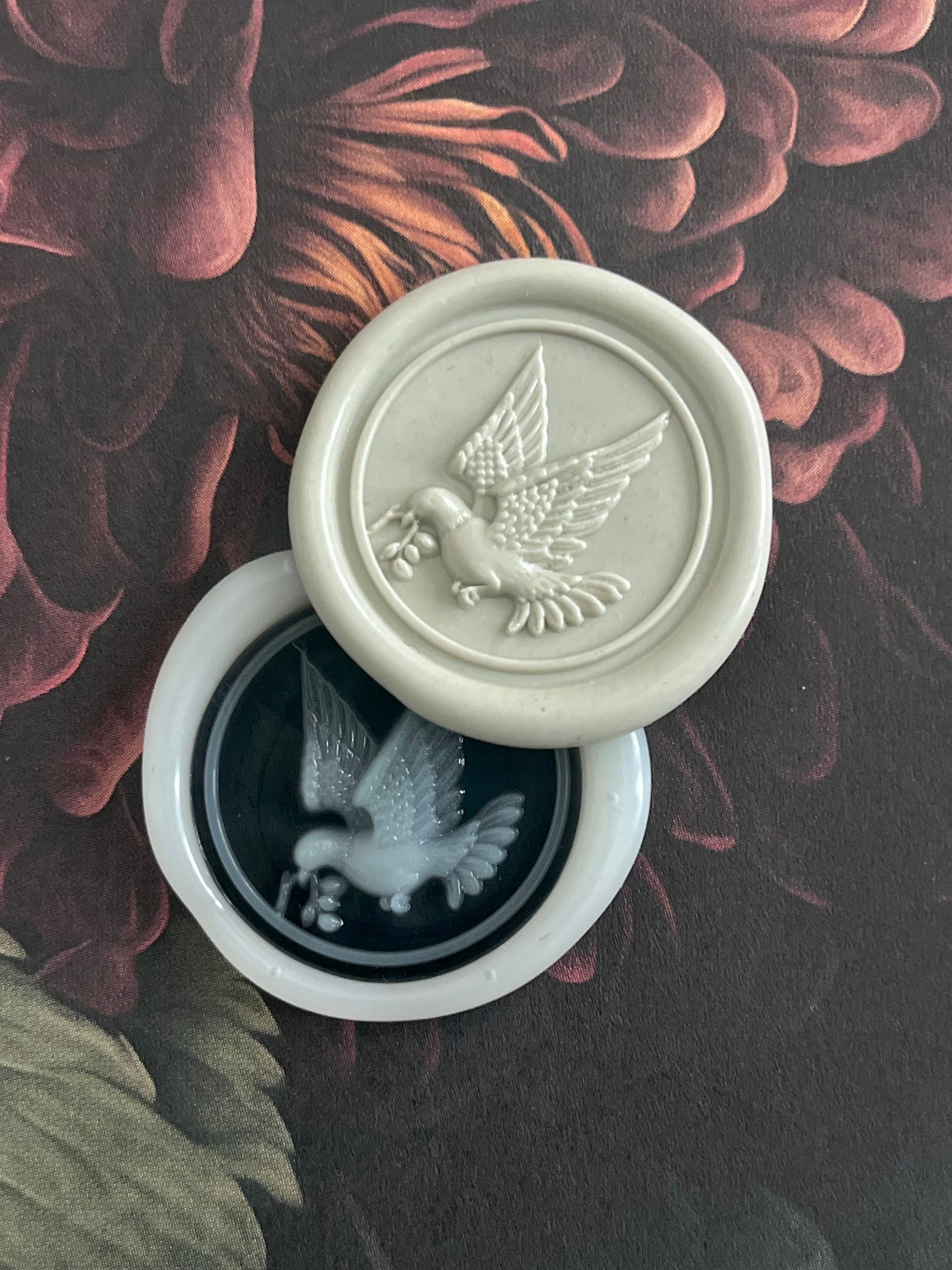 I’m speechless. So much so, that I had a hard time coming up with a name for this intricately detailed stamp of a dove carrying an olive branch. It’s. Just. So. Beautiful. This motif stands for peace, hope and reconciliation, but I settled on peace, because that’s what looking at it makes me feel 🕊️