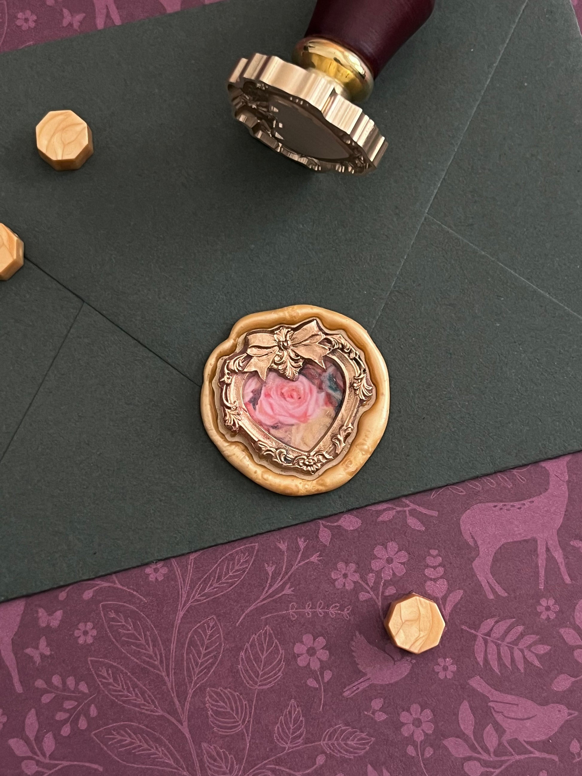 With all of our heart shaped frames we’ve added to the shop, it’s hard to decide on which one to choose!! First off, you ARE allowed to get them all, lol, but if you’re trying to narrow them down to just one, this one says “luxury.” What does that even mean in a stamp?! I’m not sure, it’s just what came to mind 😅. Deep 3D carving, thick bow, intricate detailing. It’s perfect 😌 (You can tell how much I love a stamp when I can’t stop taking pics for the website 😅😂😍)