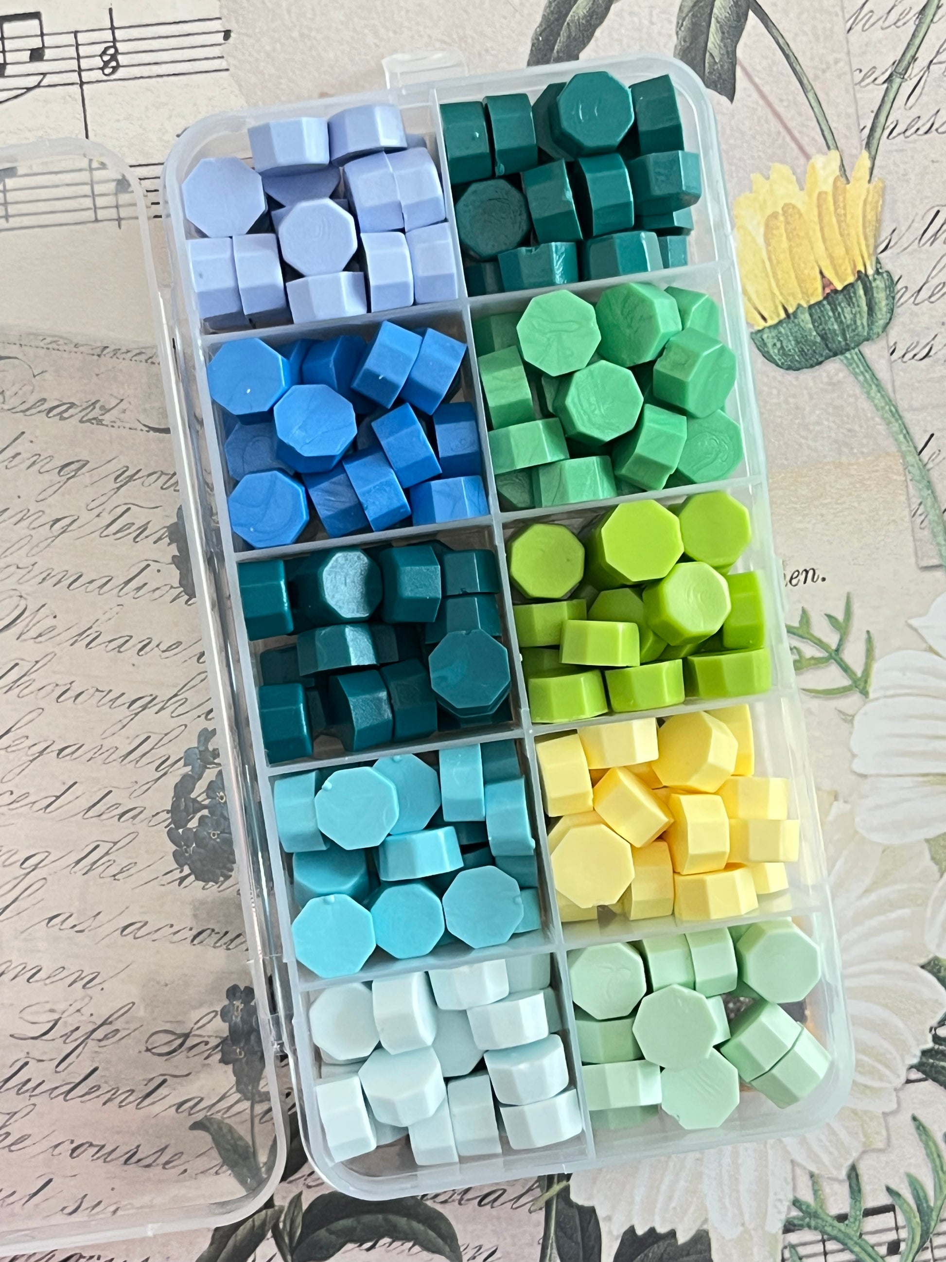 Set contains approximately 200 wax beads, organized neatly in a reusable box :)