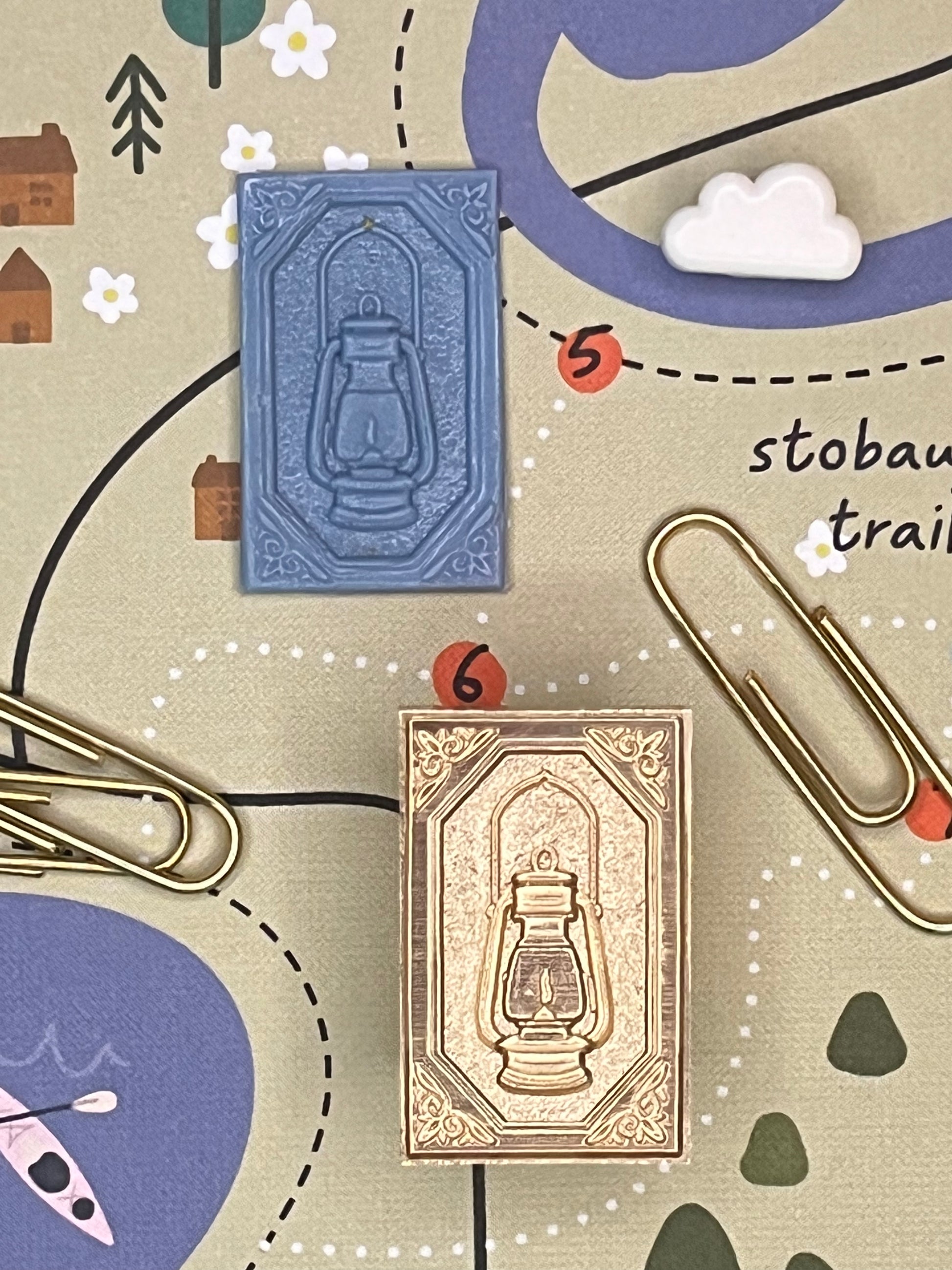 This framed lantern stamp might be my new favorite. It’s 3D design is just 🤩. I will say that the pour and scrape on this one is for advance sealers, but for the beginner, you could still layer colors by cutting around the frame. Also. The bumpy background texture looks like a different color when pressed thin, because it makes it transparent if you use the right wax. It’s hard to explain, but look at the example on the envelope for reference.